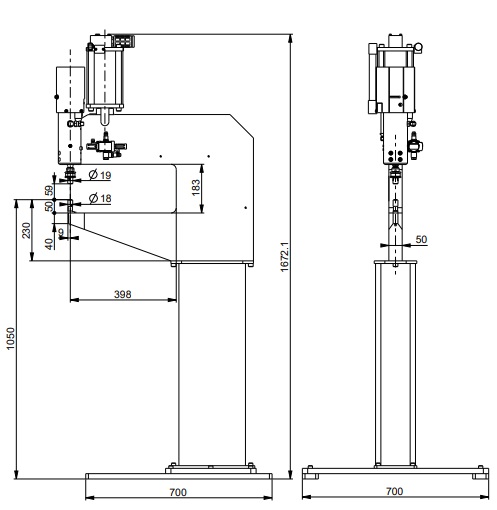 Когда поршень опущен, зазор пуансона составляет менее 8 мм, и вторая ножная педаль может быть задействована для операции скрепления с полной силой.
